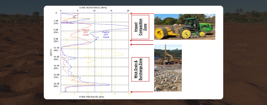 Dynamic Compaction Solutions in-situ High Energy Impact Compaction (HEIC) offers a targeted solution to the unique challenges of sandy clay compaction in construction, significantly enhancing soil stability and load-bearing capacity directly at the construction site.